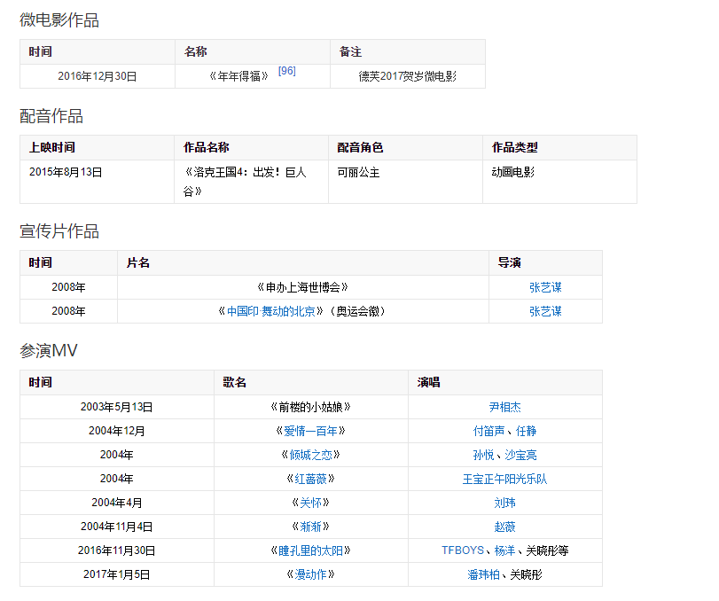 2001年,完成個人出道作品《煙海沉浮。2005年,憑借奇幻動作片《無極》被觀眾認識。2008年,因在年代愛情劇《幸福還有多遠》中飾演大丫而嶄露頭角。2014年,憑借時尚情感劇《一仆二主 》獲國劇盛典觀眾喜愛的新人女演員獎。2015年,發(fā)行個人音樂專輯《十八》。