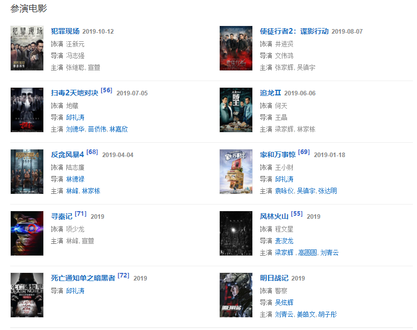 ? 2020-01    2019年度電影頻道M榜最佳反派演出[102]     掃毒2:天地對決、犯罪現(xiàn)場    (獲獎)