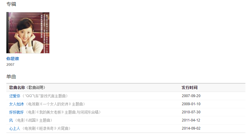 ? 2007-02-10    CCTV中國(guó)文藝榜內(nèi)地音樂(lè)女歌手獎(jiǎng)季軍[124]     (獲獎(jiǎng))