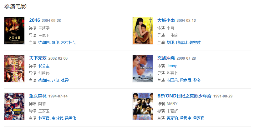 ? 2005-03    第5屆    華語電影傳媒大獎最佳女演員獎[156]     2046    (提名)