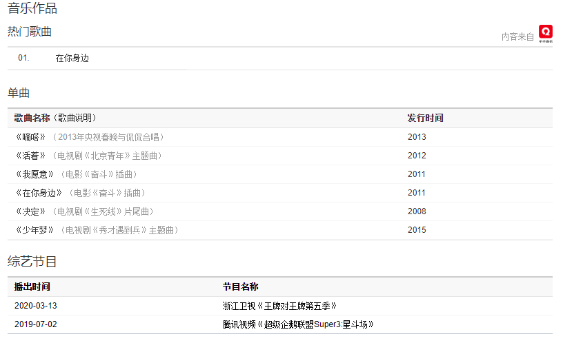 到愛的距離》。2014年,參加浙江衛(wèi)視戶外競技真人秀《