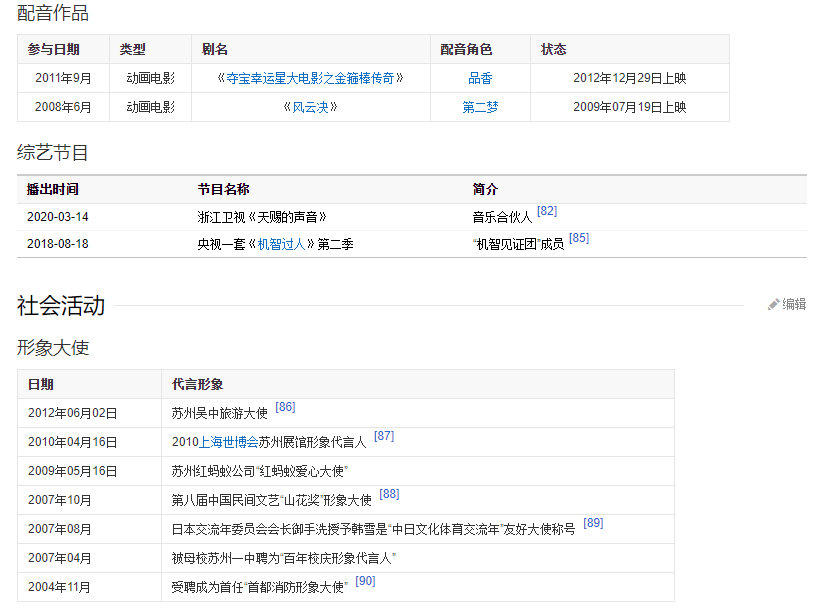 浪漫櫻花》,同年,韓雪以文化考試第一名的成績被上海戲劇學(xué)院表演系錄取;2003年12月,因在古裝武俠劇《