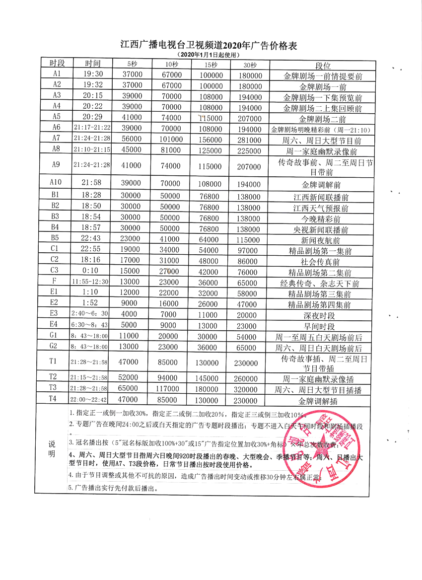衛(wèi)視方案:江西衛(wèi)視廣告刊例