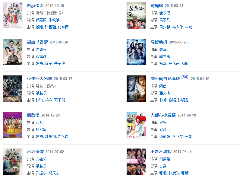? 2013-06-14    第十九屆    上海電視節(jié)白玉蘭獎 人氣女演員    天涯明月刀    (提名)