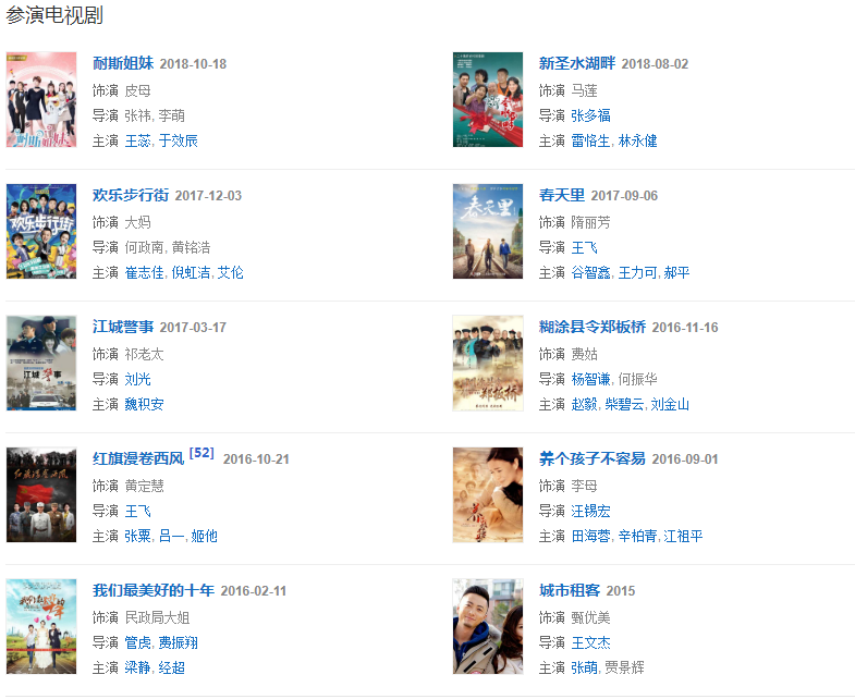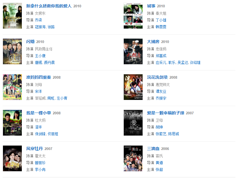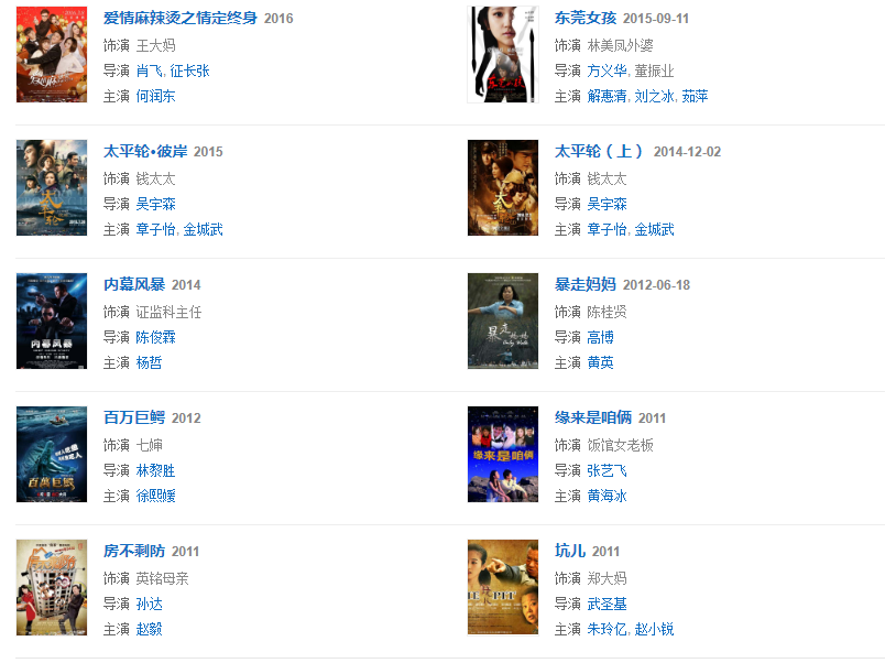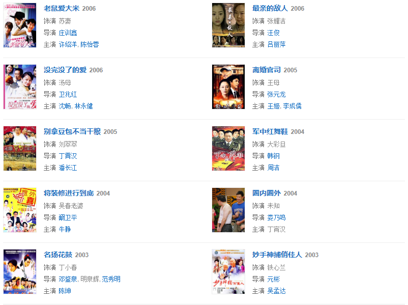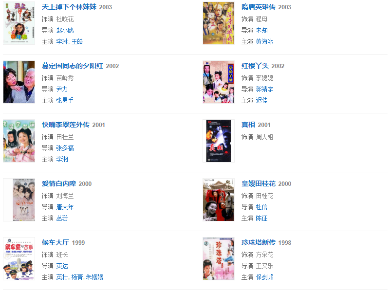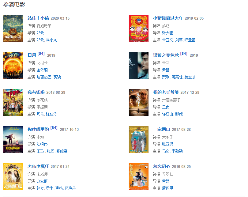 1987年因參演《雪野》獲得第7屆飛天獎女主角稱號。2002年參演喜劇《妙手神捕俏佳人》飾演鐵心蘭。2005年參演賀歲片《別拿豆包不當干糧》飾演劉翠翠 。2007年參演《圣水湖畔第二部 》飾演馬蓮。2010年參演新《還珠格格》飾演容嬤嬤。2011年參演公益電影《暴走媽媽,因陳桂賢一角、獲得第3屆紐約中國電影節(jié)“亞洲受歡迎藝人獎”;第9屆電影頻道傳媒大獎最佳女主角;第15屆上海國際電影節(jié)最佳女主角。