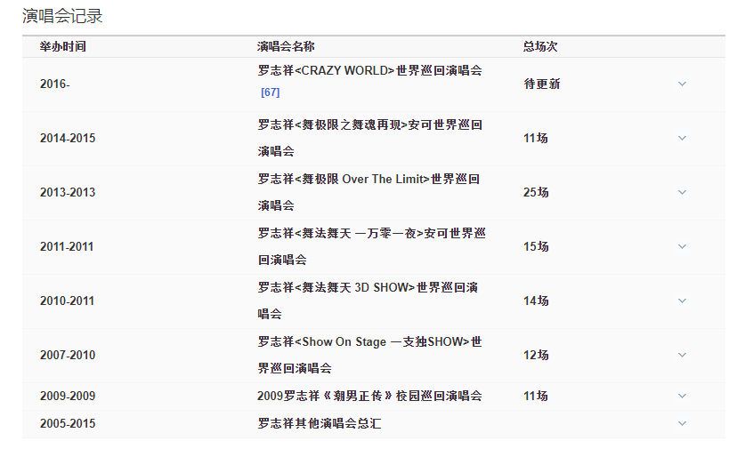1995年因參加“四大天王就是你”模仿大賽正式出道。2003年推出首張個人專輯《Show Time》。2005年舉行個人首場演唱會,成為第一位踏上臺北小巨蛋的流行歌手。2008年發(fā)行第六張專輯《潮男正傳》,獲MTV亞洲音樂大獎。 2010年專輯《羅生門》獲“五白金”。2012年前往日本樂壇發(fā)展,首張日文單曲《Dante》推出首周即登上日本公信榜單曲周榜第十名,使羅志祥成為首位于日本公信榜單曲獲得前十名的臺灣男歌手。2013年第十張專輯《獅子吼》獲認(rèn)證四白金唱片,使羅志祥連續(xù)四年(2010—2013)成為臺灣地區(qū)年度唱片銷售總冠軍。2016年,開啟個人第四次世界巡回演唱會“CRAZY WORLD瘋狂世界”。