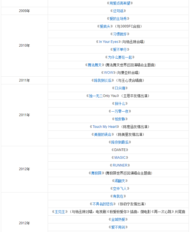 ? 2012    華語咪咕榜中榜勵志金曲成都盛典 - 最受歡迎勵志歌手    (獲獎)