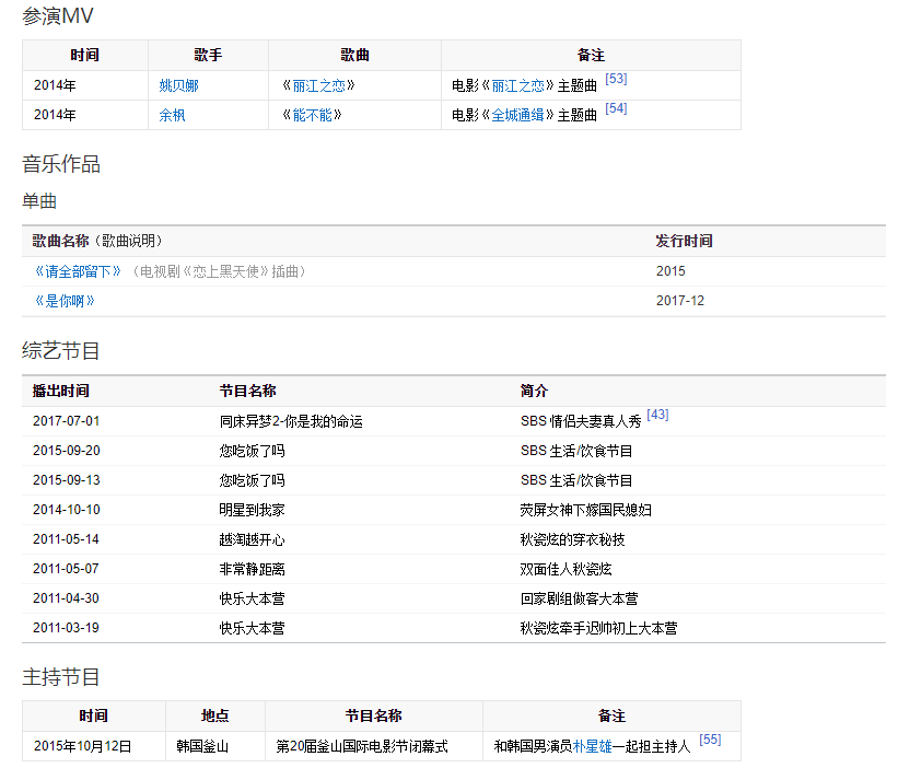 2011年,秋瓷炫在都市情感劇《回家的誘惑》中飾演家庭主婦林品如,而她則憑借該劇獲得了亞洲偶像盛典亞洲偶像最受歡迎海外演員獎。2012年,主演民族古裝劇《木府風云》。2013年3月,出席中央電視臺2012中國電視劇年度明星盛典,獲得“國際合作獎” 。2014年,主演古裝劇《長安三怪探》。2015年,主演抗戰(zhàn)劇《最后一戰(zhàn)》。2016年,主演都市情感劇《幸福在一起》;5月20日,出席韓流商品博覽會,擔任韓流宣傳大使。2017年2月,主演動作片《游戲規(guī)則》。