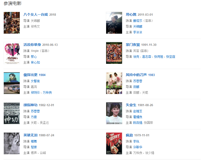 1973年,獲得首屆“香港小姐”選美活動第4名。1975年,出演個人首部電視劇《乘風(fēng)破浪》,從而正式進(jìn)入演藝圈。1978年,在古裝武俠劇《倚天屠龍記》中飾演周芷若。1979年,在古裝武俠劇《楚留香傳奇》中飾演蘇蓉蓉,該劇在臺灣播出期間收視率達(dá)到了70% 。1980年,隨著民國劇《上海灘》的播出,她成為了“無線四大花旦”之一。1981年,其主演的古裝武俠劇《飛鷹》播出。1985年,主演古裝神話劇《觀世音》;同年,與香港無線電視約滿后,為了家庭而選擇淡出演藝圈。1987年,回歸電視熒屏,主演了民國愛情劇《京華煙云 。1991年,主演古裝武俠愛情劇《戲說乾隆 。1992年,憑借古裝神話劇《新白娘子傳奇》贏得廣泛關(guān)注 。1997年,主演年代劇《百年沉浮》。